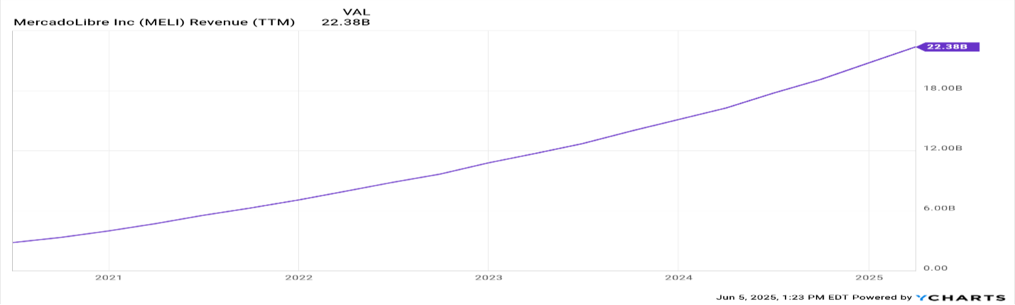 4. YCharts. MELI 5Y Trailing 12 Month Revenue (6/5/25)